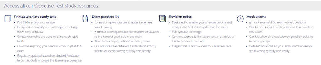 They have some of the top CIMA tutors around that provide some great video analysis for their full objective test courses.